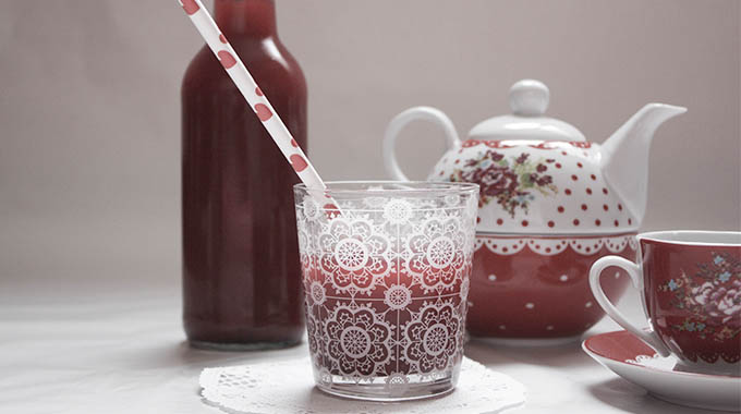 Ingrédients pour 2 personnes | 5 grammes de fleurs dhibiscus séchées 30 centilitres deau 30 centilitres de nectar de framboises 2 centilitres de sirop de pamplemousse 3 centilitres de rhum arrangé 3 centilitres de sucre de canne liquide 1 cuillère à café de feuilles de thé aux fruits rouges