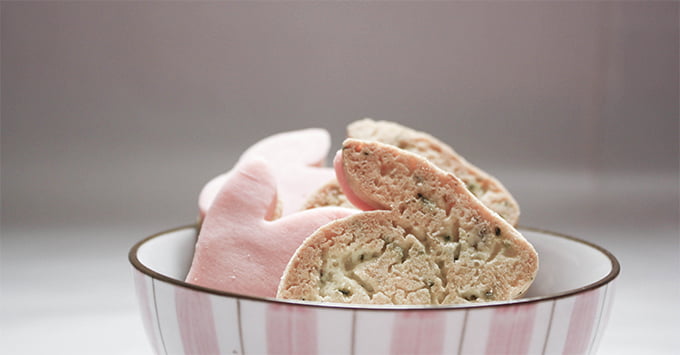 Préparation | Mélangez le beurre et le sucre ensemble. Ajoutez ensuite le jaune doeuf puis la farine et le thé grossièrement haché. Sur un plan de travail fariné, étalez la pâte et découpez des petits lapins à laide de lemporte-pièce. (Pour je ne sais quelle raison, ma pâte était très friable Si vous êtes dans ce cas-là également, armez vous de patience ^^). Enfournez 10 minutes à 180 degrés. Pendant ce temps, étalez délicatement et finement la pâte damandes sur une feuille de papier sulfurisée. Formez de nouveau des lapins avec lemporte-pièce. À laide dun pinceau et deau, humidifiez et superposez la pâte damandes sur chaque sablé. Conservez dans une boite hermétique.