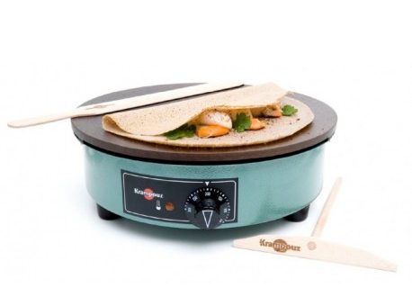 Avec ses 3000 Watts, la Krampouz CEBPA4AO est l’une des crêpières les plus puissantes sur le marché. Elle se dote d’une grande plaque de cuisson en fonte d’acier usinée et d’une résistance en serpentin, pour une distribution homogène de la chaleur. En un rien de temps, vous obtenez une crêpe délicieuse et de qualité professionnelle. Celle-ci ne s’accroche pas et s’enlève assez facilement.